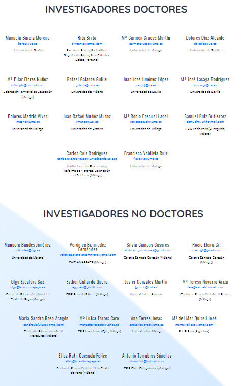 Un grupo de investigación que se remonta a 1.988. Desde noviembre de 2011, la investigadora principal es la Profesora Titular Dra. Dolores Madrid Vivar, del Departamento de Didáctica y Organización Escolar de la Facultad de Ciencias de la Educación de la Universidad de Málaga.
